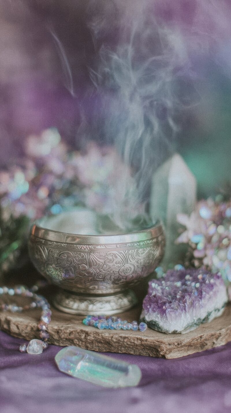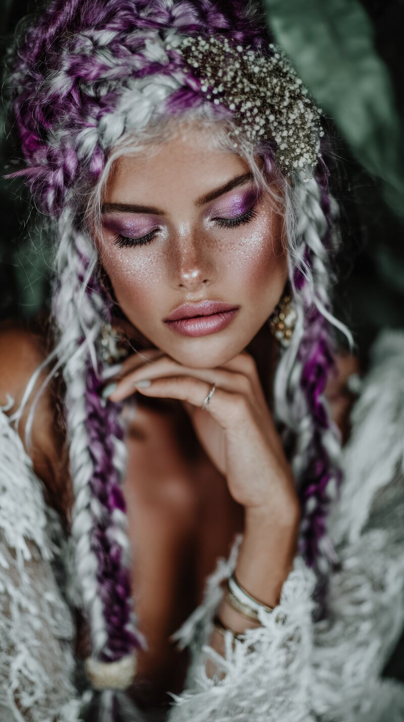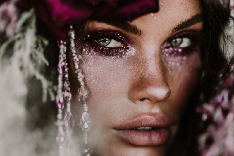 Diese Bilder erzählen von einer Ära der Rückverbindung, des Erwachens und der inneren Weisheit: visuell übersetzt in florale Altäre, zeremonielle Portraits, Kristalle & Seelenblicke.